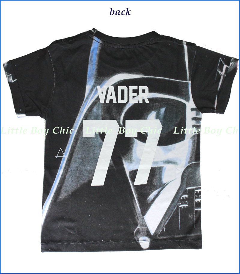 A close up image of Darth Vader in a football jersey spin. Interior neck tape helps hold its shape. Super soft hand feel. Printed neck label with no tag to irritate.